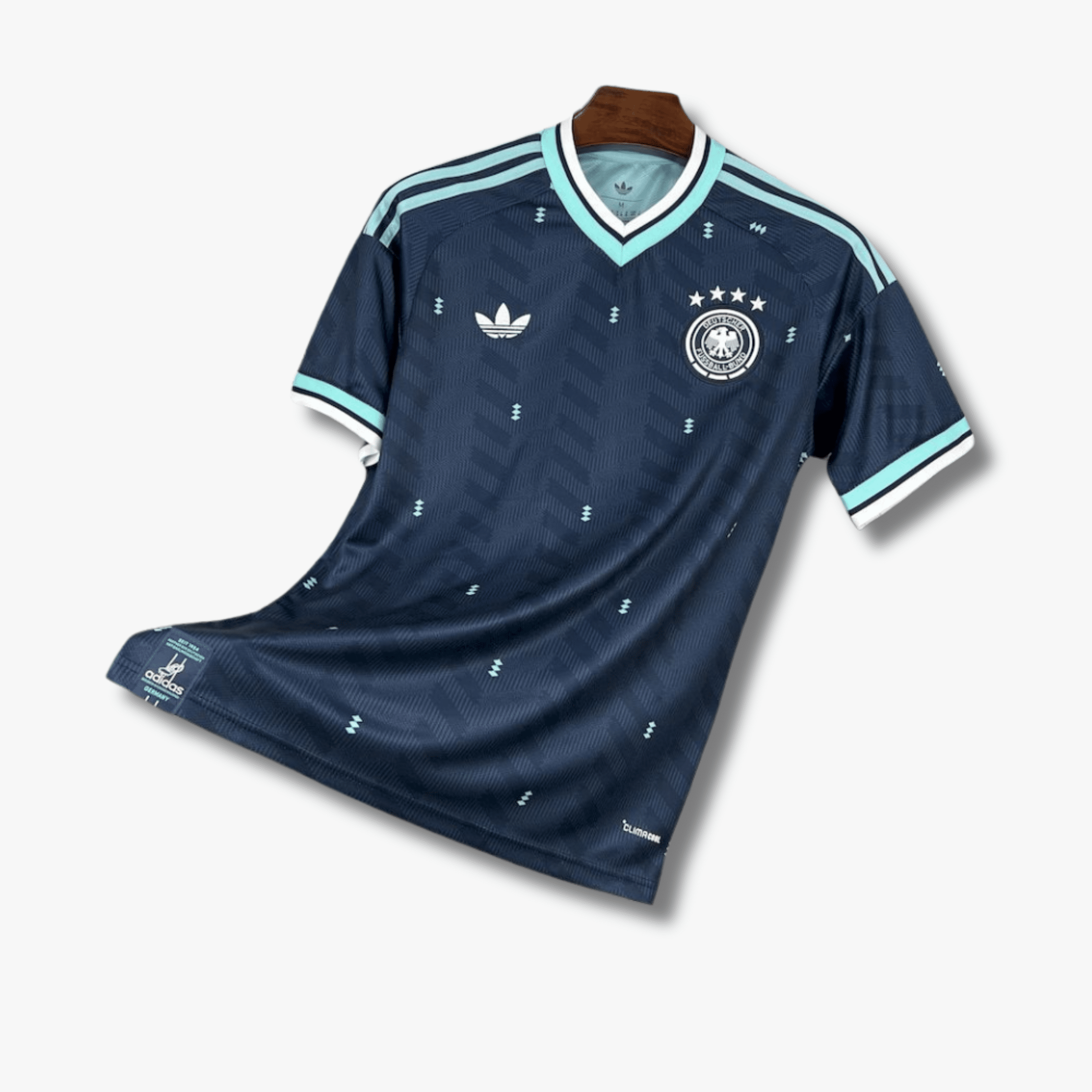 Este jersey Alemania Visita 2026 ofrece una versión moderna y elegante de la selección alemana. Con un diseño en tono azul oscuro y detalles en turquesa, transmite estilo, carácter y la esencia de un equipo reconocido por su historia y mentalidad ganadora.