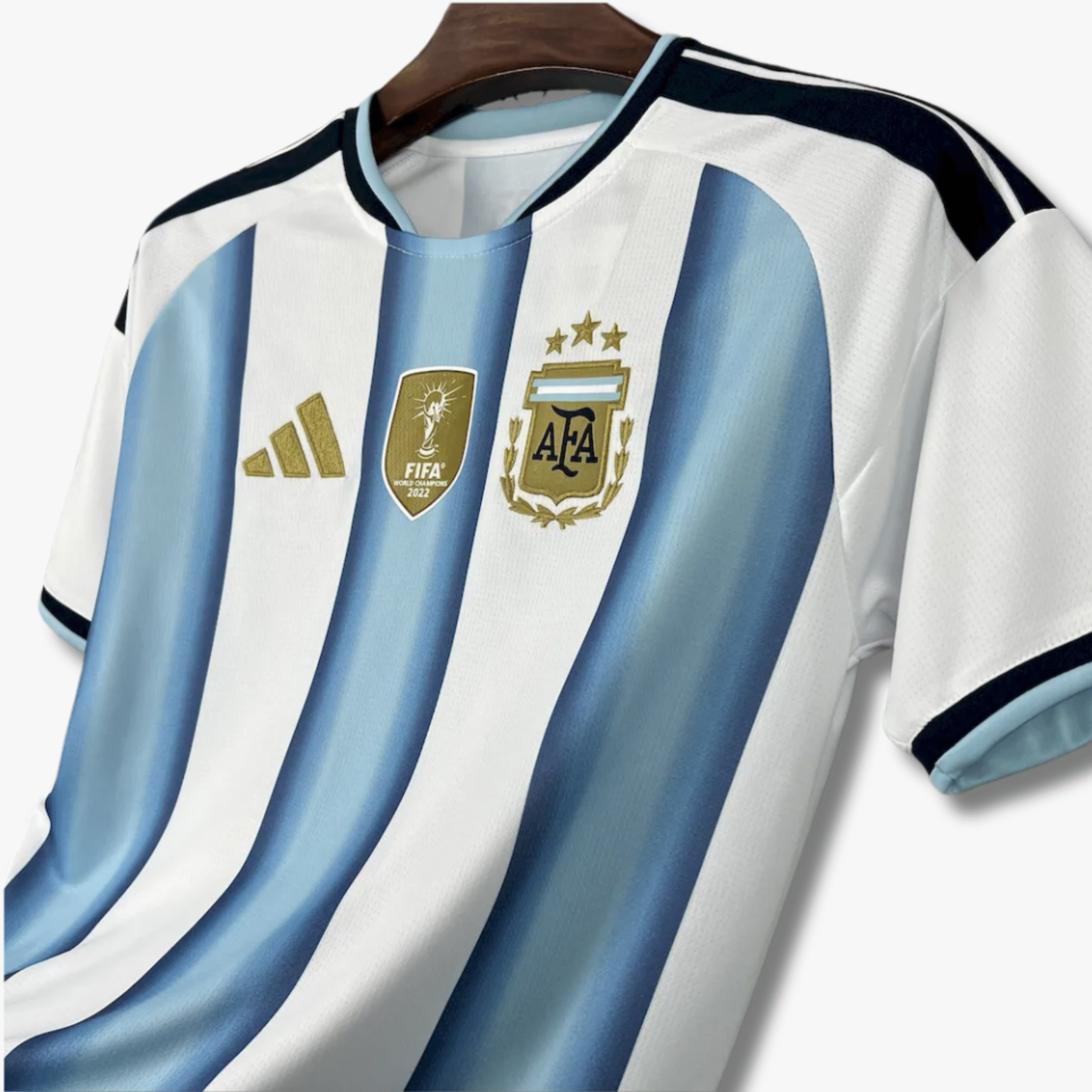 Este jersey Argentina Local 2026 mantiene viva la esencia albiceleste con su clásico diseño de franjas celestes y blancas, renovado con un estilo moderno y elegante. Representa el orgullo, la pasión y la grandeza de una de las selecciones más históricas del fútbol mundial. Con el escudo en el pecho como símbolo de identidad, es una prenda ideal para hinchas que llevan a Argentina en el corazón.