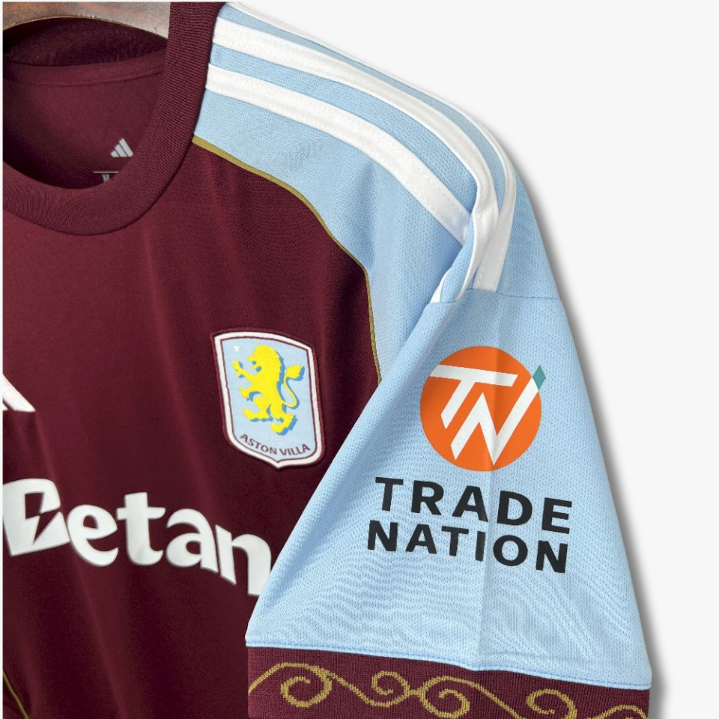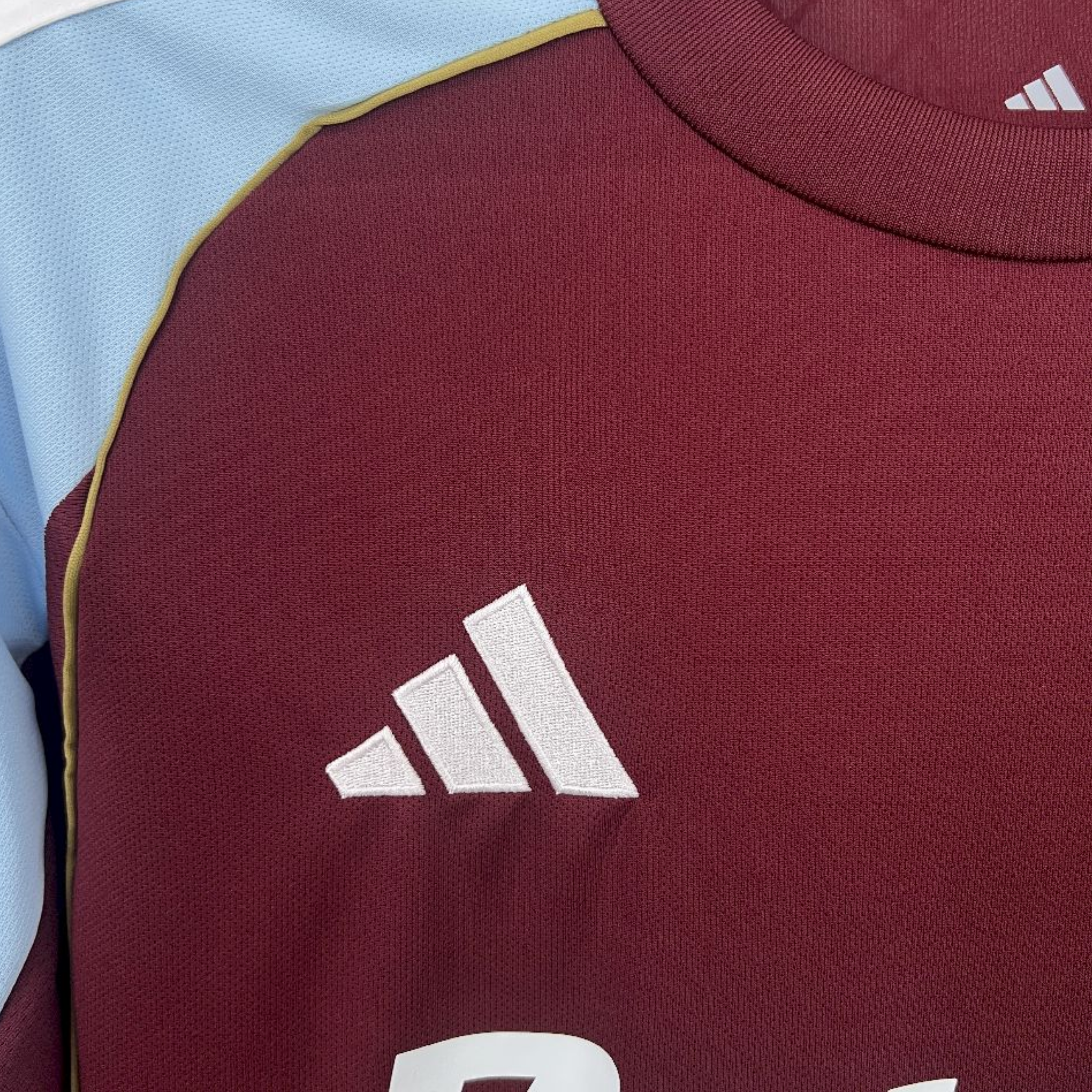 Este jersey del Aston Villa de Local 25/26 presenta una propuesta clásica y elegante que honra la tradición histórica del club en Villa Park. El icónico tono vino domina el diseño, combinado con mangas en azul celeste que aportan contraste y mantienen la identidad característica del equipo. Los detalles en dorado enmarcan las líneas del corte y añaden un acabado sofisticado, mientras que el tejido texturizado le brinda profundidad visual y un estilo distintivo. El escudo en el pecho simboliza el orgullo, la historia y la pasión que acompañan al Aston Villa en cada partido como local.