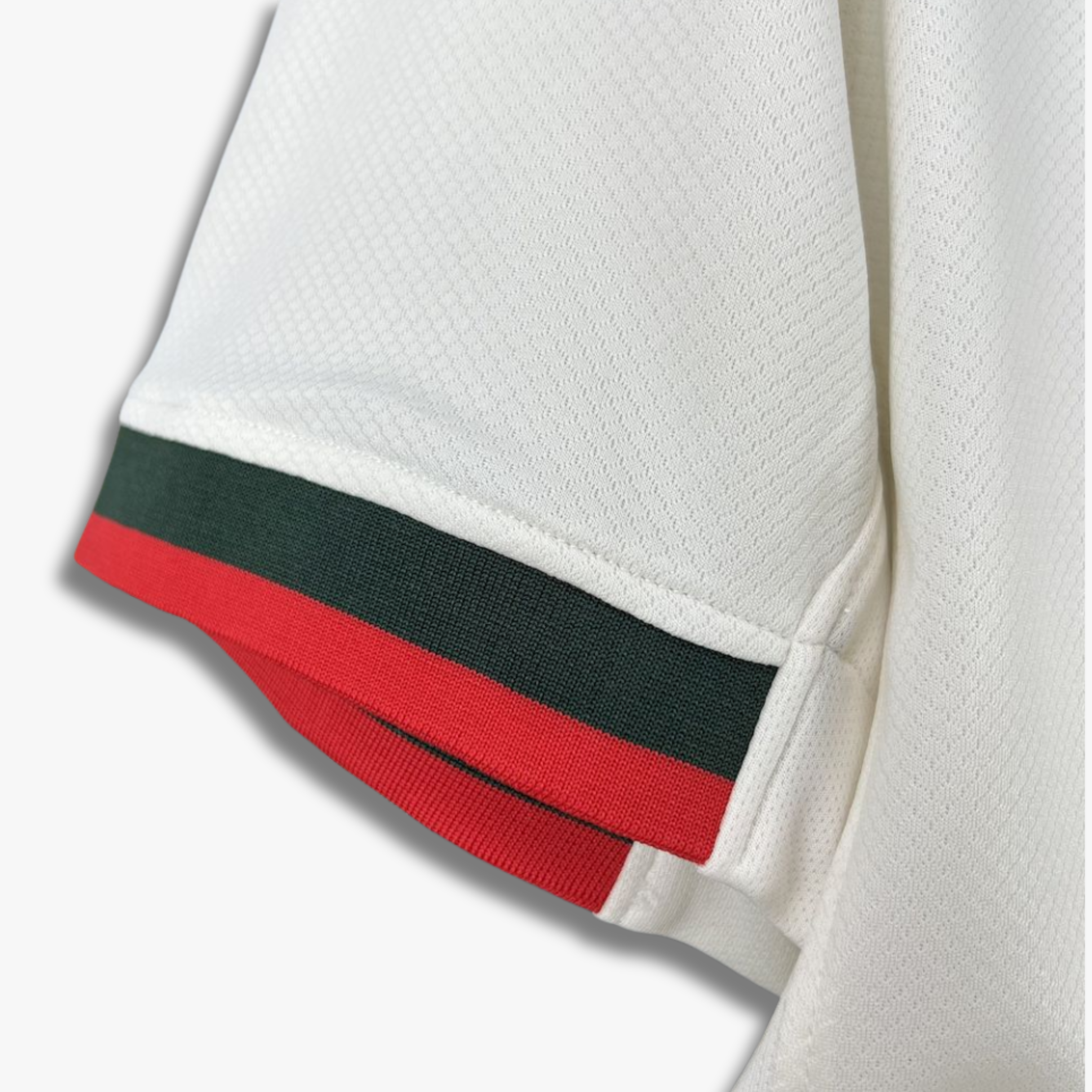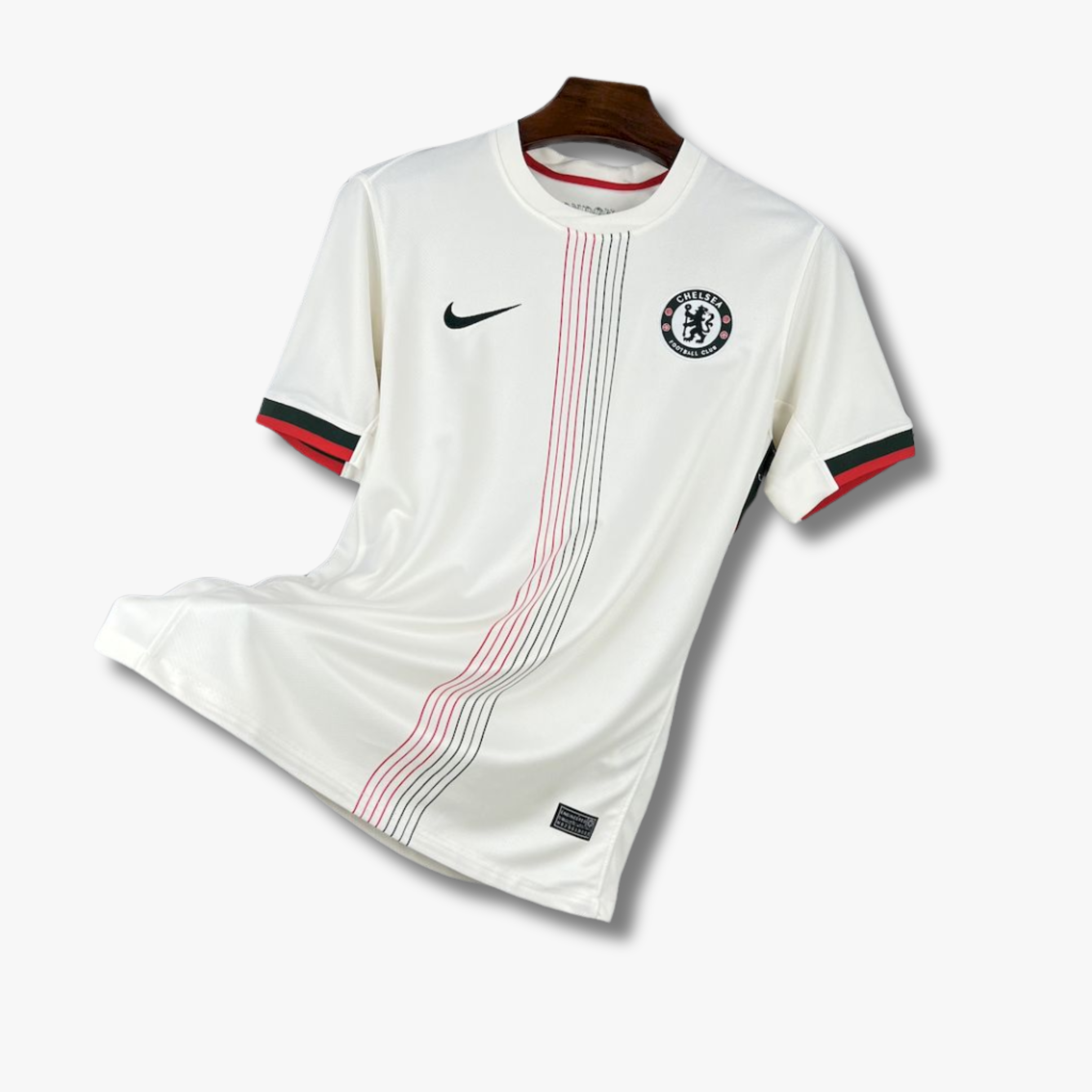 Este jersey del Chelsea FC de visita temporada 25/26 presenta una propuesta fresca y sofisticada que combina elegancia clásica con detalles contemporáneos. El diseño en tono blanco aporta una imagen limpia y distinguida, mientras que la franja vertical compuesta por líneas en rojo y verde añade dinamismo y un contraste llamativo que refuerza su identidad visual. Los detalles en las mangas, con acabados en rojo y verde, complementan el diseño central y aportan coherencia visual a toda la prenda. Su confección estilizada y el tejido texturizado elevan su presencia tanto dentro como fuera del terreno de juego.