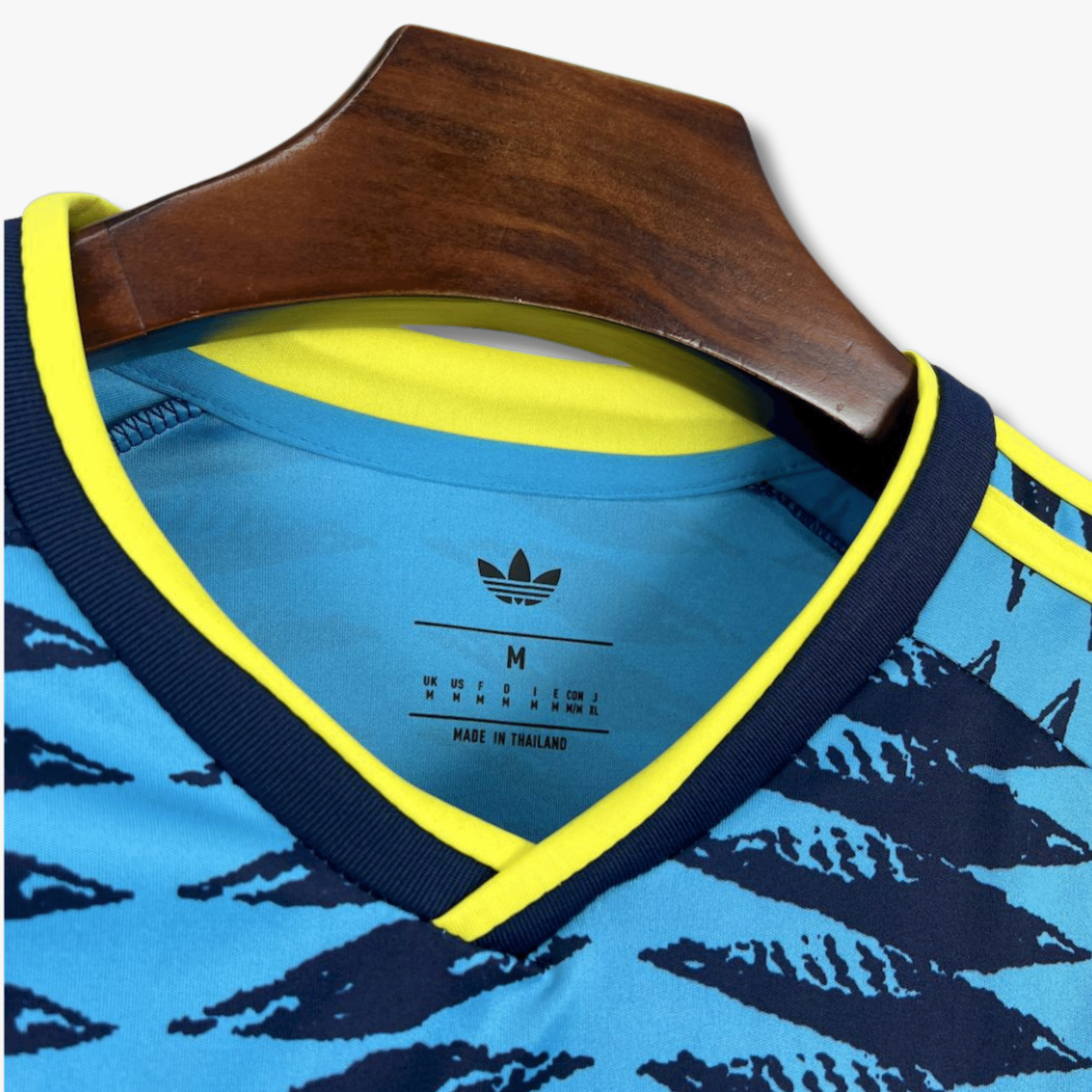 Este jersey Colombia Visita 2026 presenta una propuesta audaz y moderna que rompe con lo tradicional. Con un diseño en tonos azules intensos y detalles en amarillo vibrante, refleja una versión fresca de la identidad cafetera, pensada para quienes buscan algo distinto sin perder el orgullo de selección.