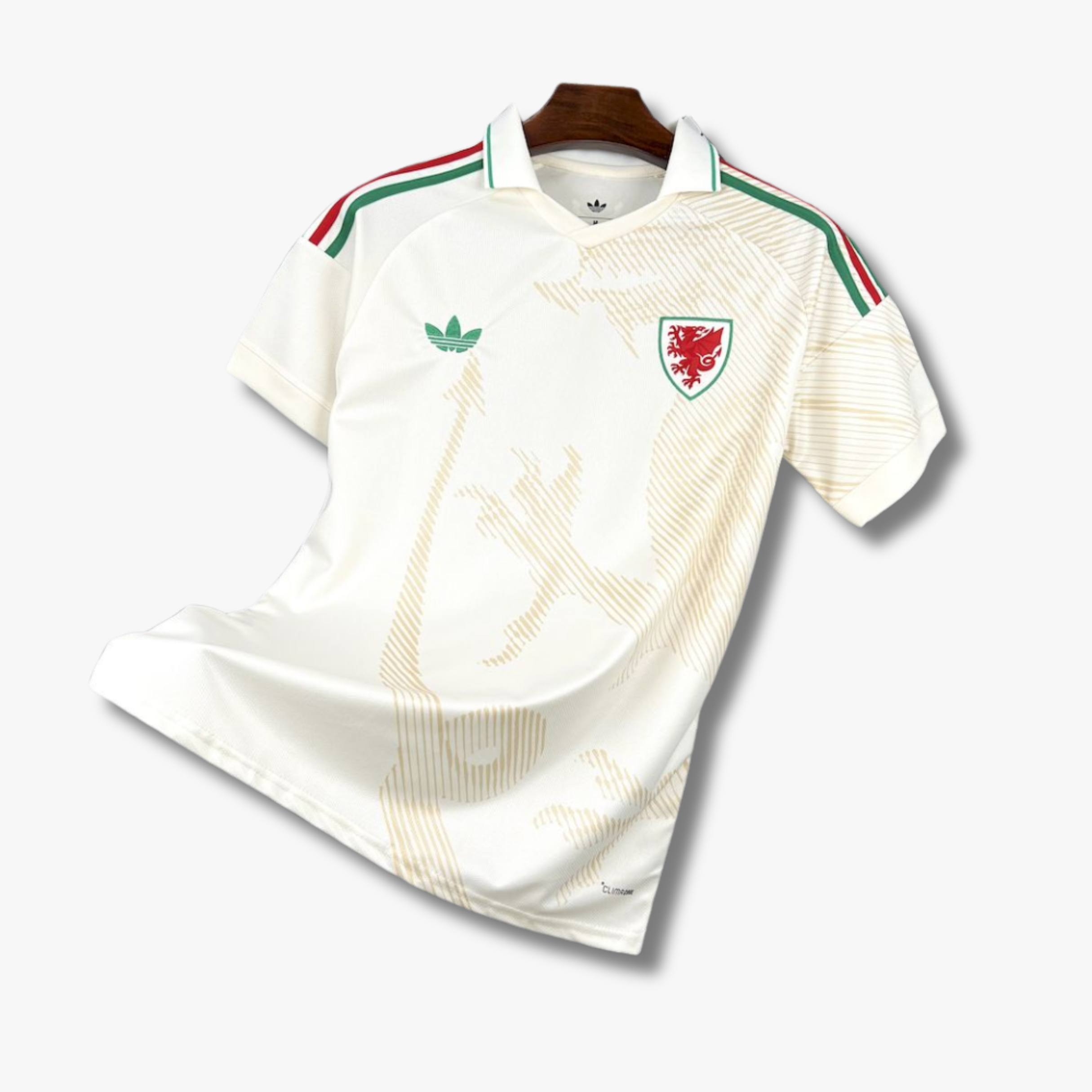 Este jersey de la selección de Gales de visita 2026 presenta una propuesta elegante y diferente, ideal para quienes buscan un diseño alternativo sin perder la esencia del equipo. Con un tono blanco predominante y detalles sutiles en verde y rojo, esta camiseta transmite distinción y orgullo galés con un estilo moderno.