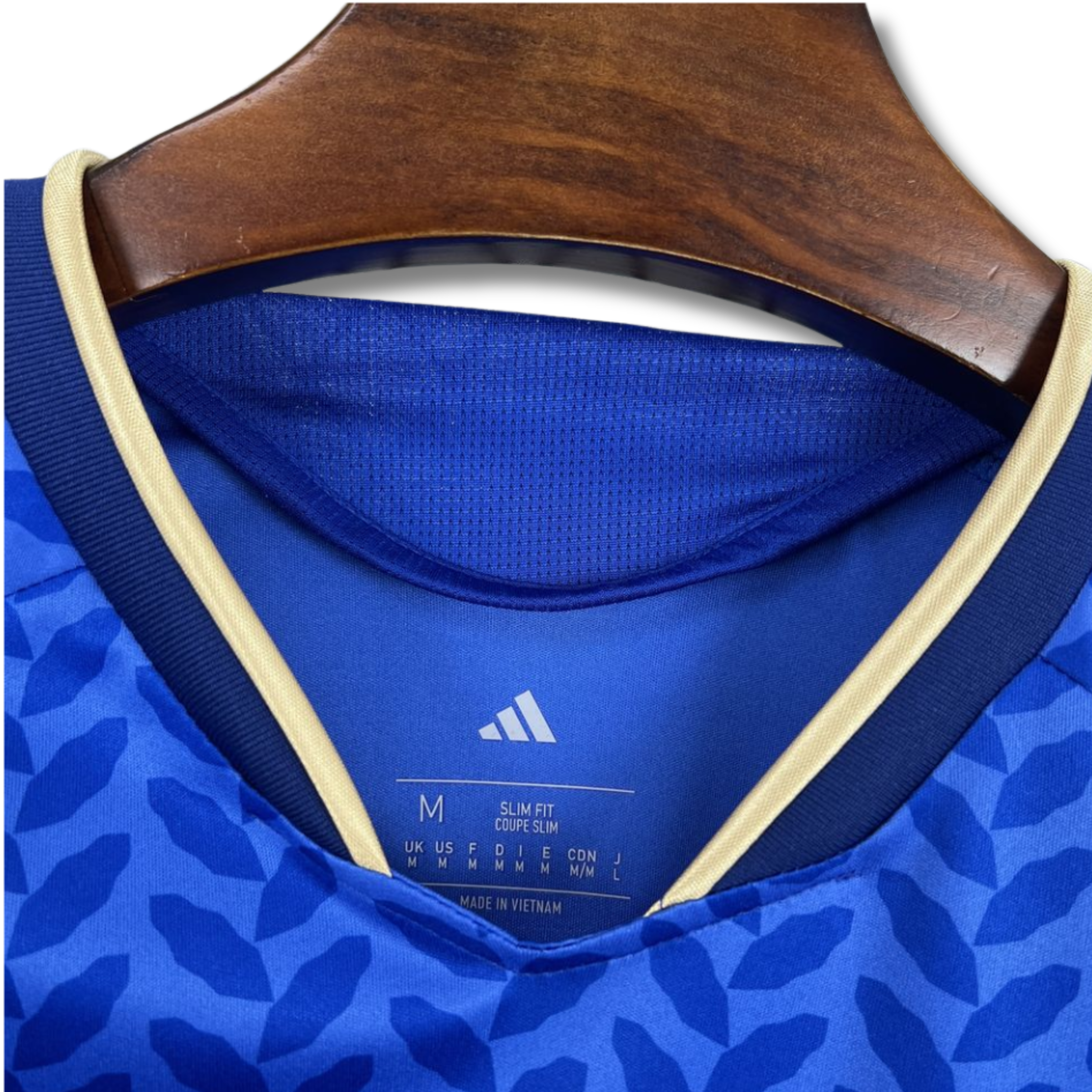 Su patrón sutil integrado en el diseño le da una presencia única, ideal para aficionados que desean portar los colores de Italia con estilo, ya sea en partidos, en la calle o como parte de una colección.