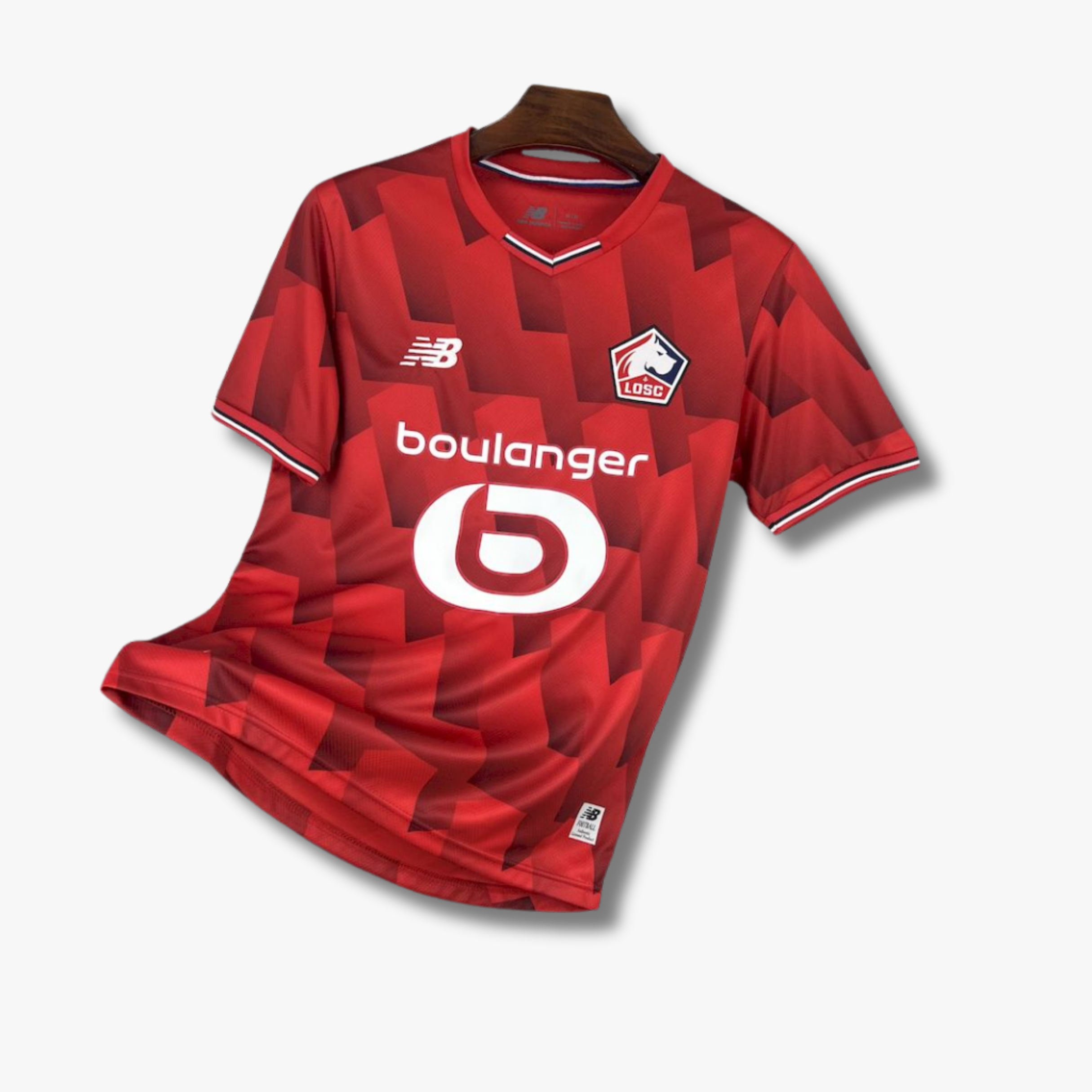 El jersey de local del LOSC Lille para la temporada 25/26 presenta un diseño dinámico en rojo intenso con un patrón geométrico en tonos más oscuros que aporta profundidad y carácter al conjunto. El cuello en “V” incorpora detalles en líneas contrastantes que elevan el acabado visual, mientras que los puños mantienen una terminación limpia que equilibra el diseño. La combinación del gráfico frontal con la base roja mantiene la identidad tradicional del club, pero con un enfoque moderno y agresivo.