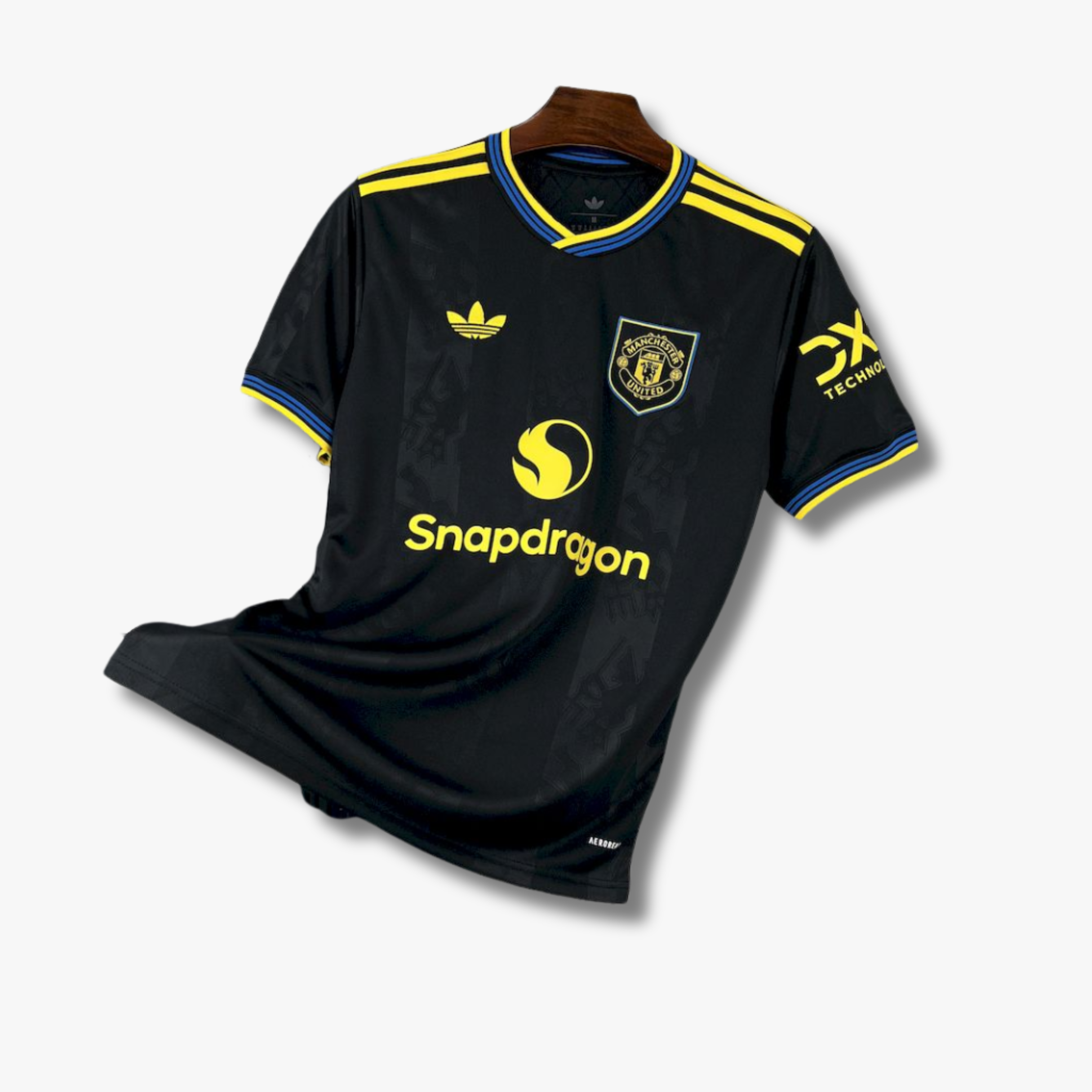 Este jersey del Manchester United Alternativa temporada 25/26 presenta una propuesta audaz y moderna que refleja el carácter competitivo del club en sus compromisos fuera de Old Trafford. El diseño en color negro proyecta una imagen poderosa y contemporánea, mientras que los detalles en amarillo y azul aportan un contraste vibrante que realza la identidad visual del equipo.