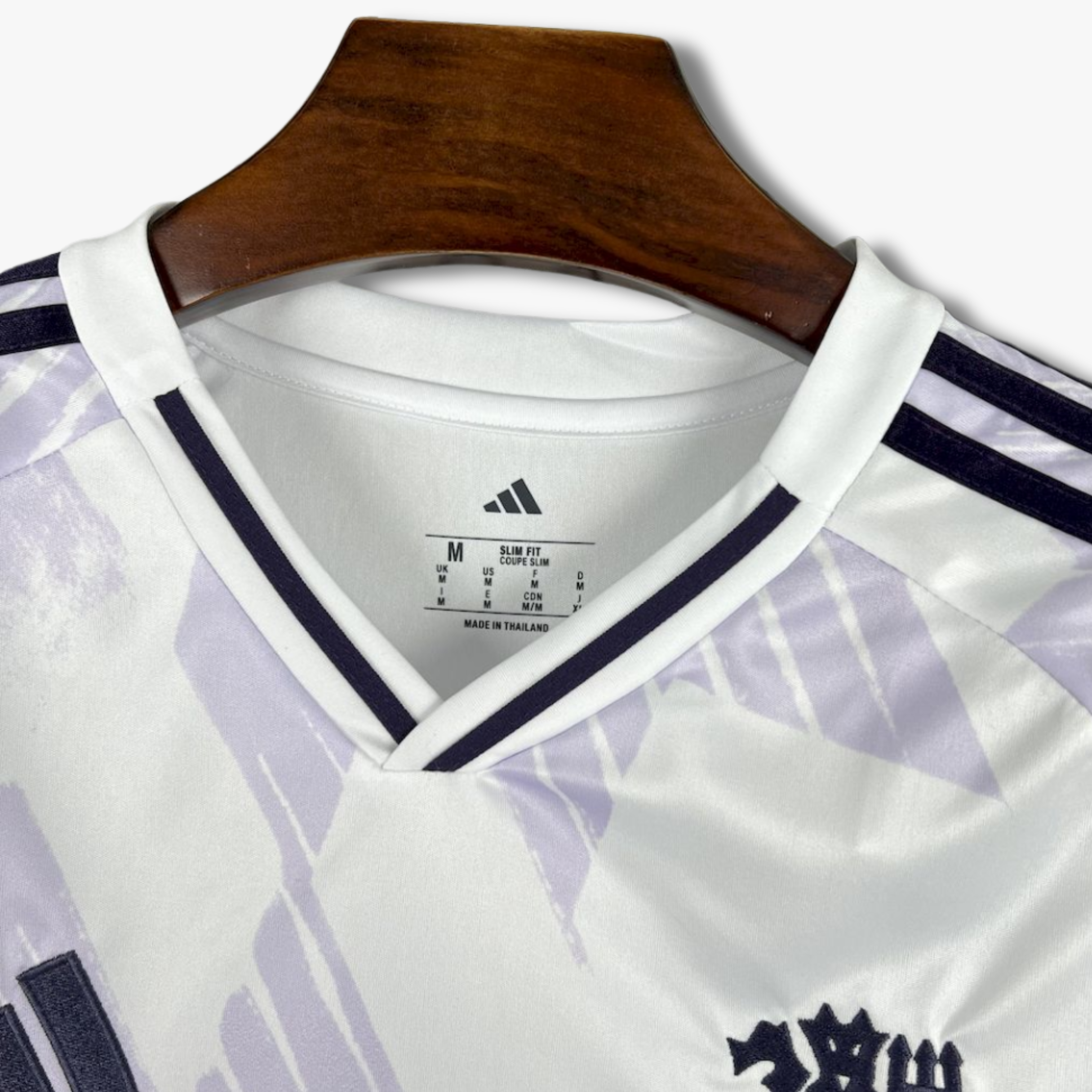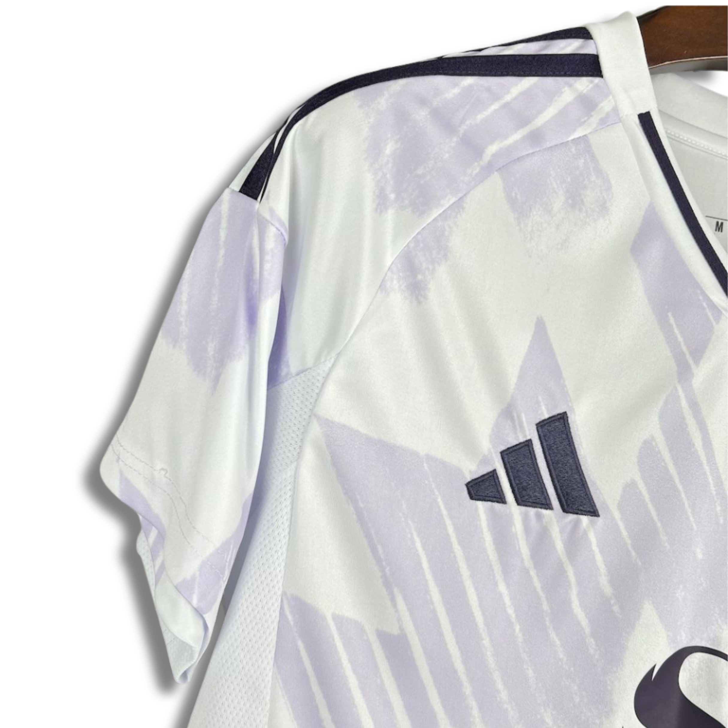 Este jersey del Manchester United de visita temporada 25/26 presenta una propuesta moderna y llamativa que combina elegancia con un enfoque artístico en su diseño. La base en color blanco se complementa con gráficos en tono lila que recorren el frente y las mangas, aportando dinamismo y una identidad visual fresca que distingue al equipo en cada estadio.