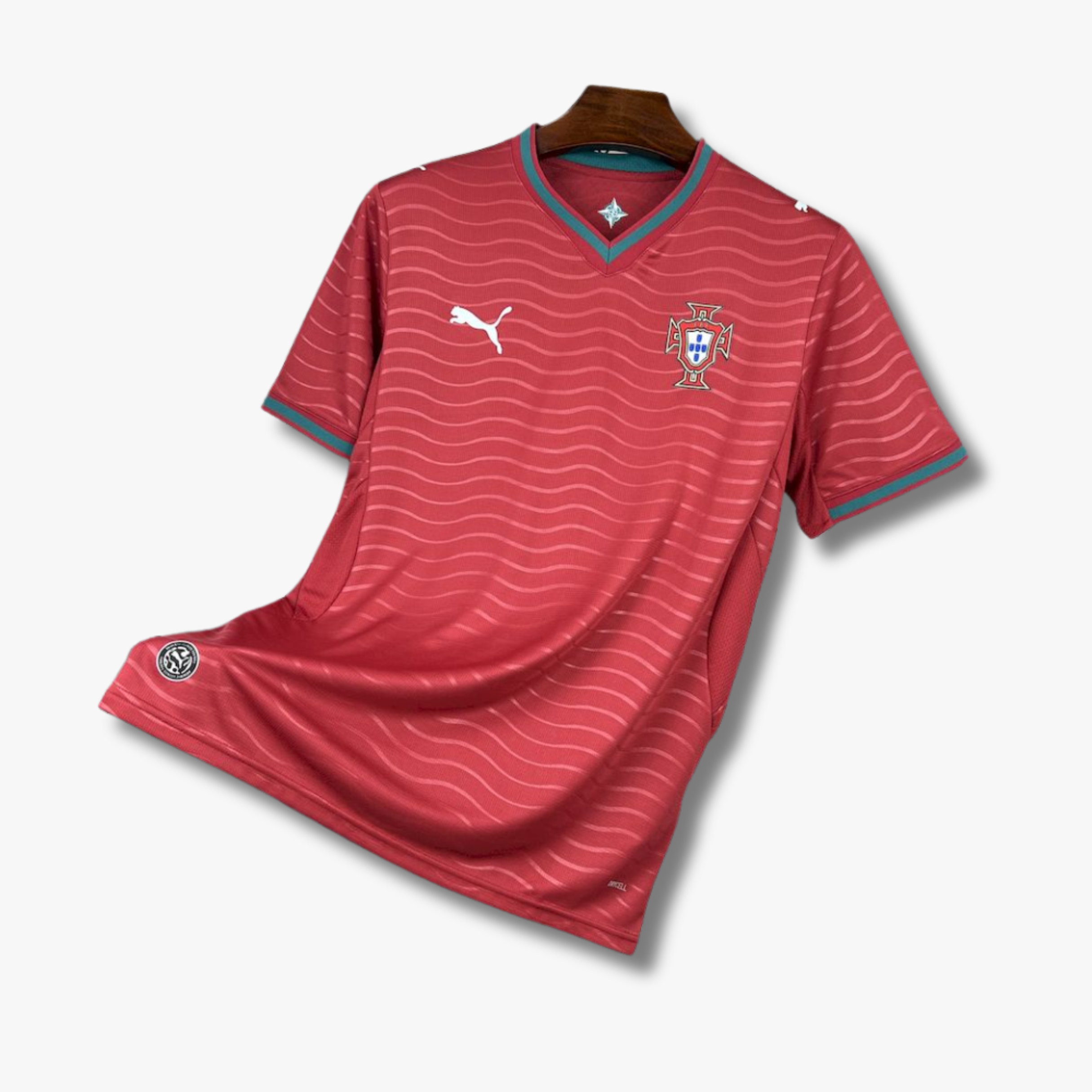 Su patrón sutil integrado en la tela le aporta un toque único sin perder la esencia clásica de Portugal. Ideal para aficionados que buscan una prenda auténtica para apoyar a su selección, ya sea en partido, en la calle o como parte de su colección.