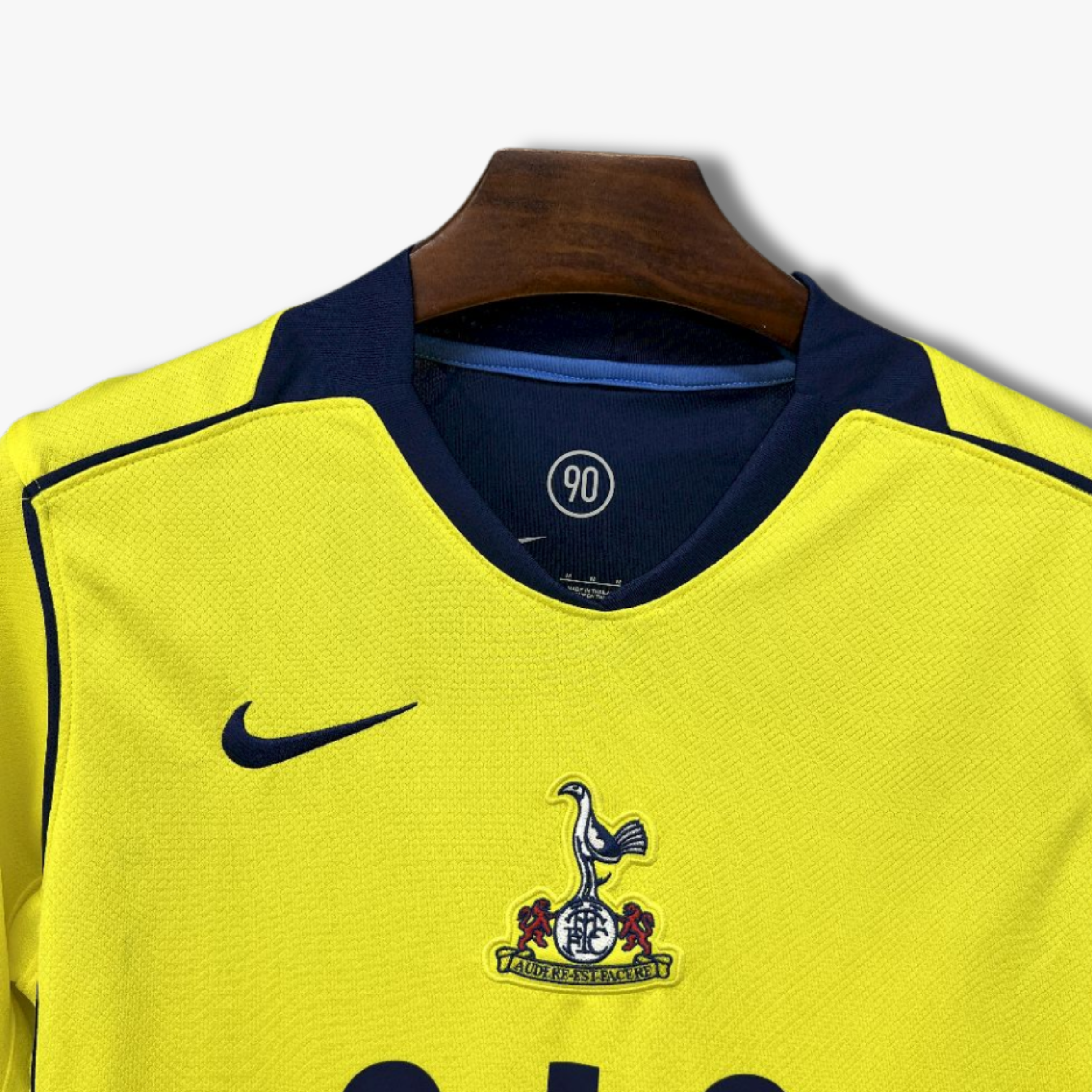 Este jersey del Tottenham Hotspur alternativo temporada 25/26 presenta una propuesta vibrante y audaz que resalta la identidad moderna del club. La base en color amarillo intenso se combina con detalles en azul marino en el cuello, mangas y líneas estructurales, creando un contraste llamativo que aporta energía y carácter al diseño.
