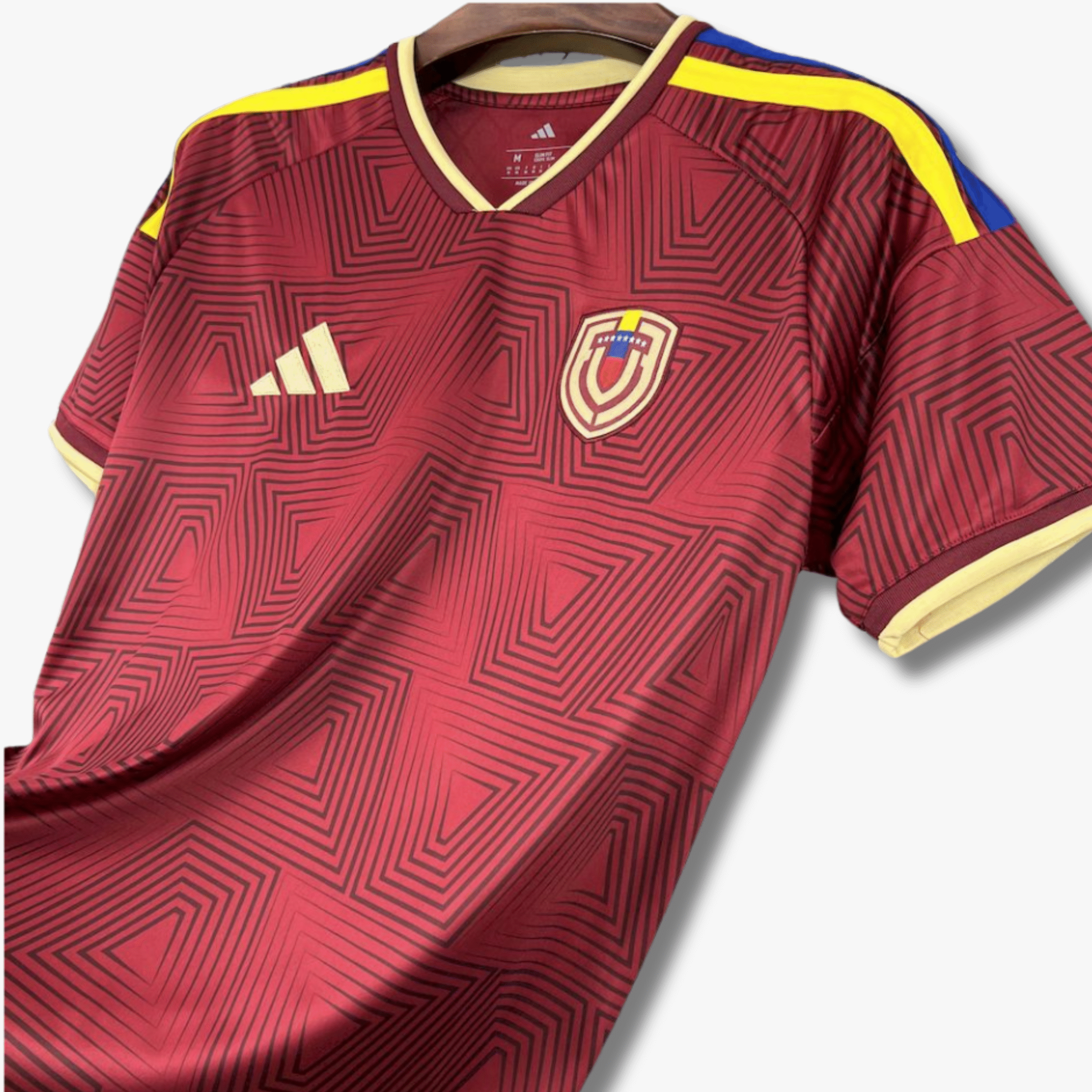 Con un estilo elegante y un patrón sutil integrado en el diseño, es ideal para hinchas que apoyan a Venezuela con orgullo y buscan una prenda única para su colección o para el día a día.